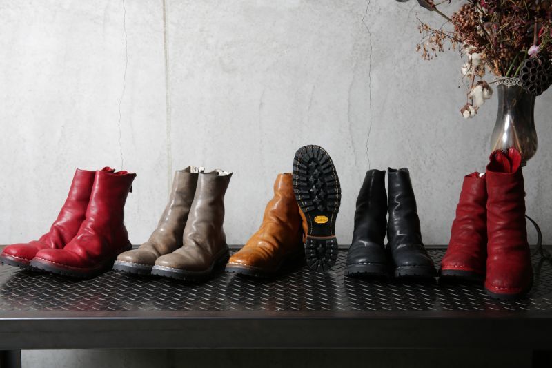 通常であれば立体的な構造となるブーツは当たり前だけれどハギ目(縫目=シーム)は必須となる。(多くのブーツのデザインを見ればそれはわかると思う)しかしながらこのブーツは意図的にそれを排除することで通常の構造では味わえない独特のそのフォルムを生み出す
