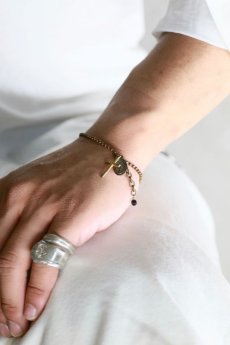 着脱が簡単に出来る2.5mmの細いカットボールタイプのブレスレットには小さめのマリアチャームと十字のクロスをセットにしました。手首を彩るさりげないブレスレットにするのはもちろん、アンクレット(足首用装飾)としても着用することが出来ます。