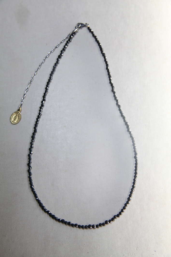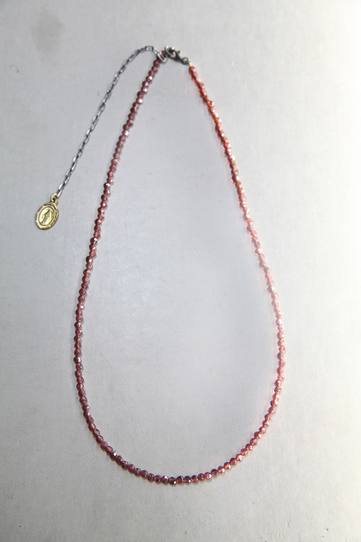 3mmの32面カットを施した美しい光を持つ天然石をやや短めのネック周りに合わせた仕様のシングルタイプのネックレス。