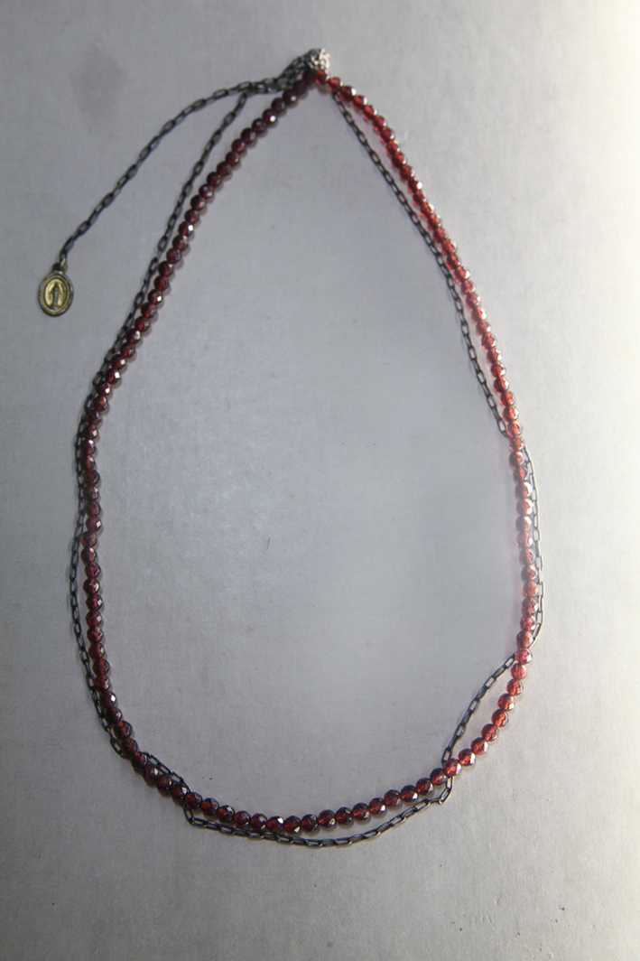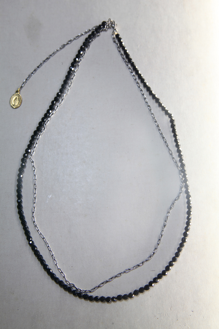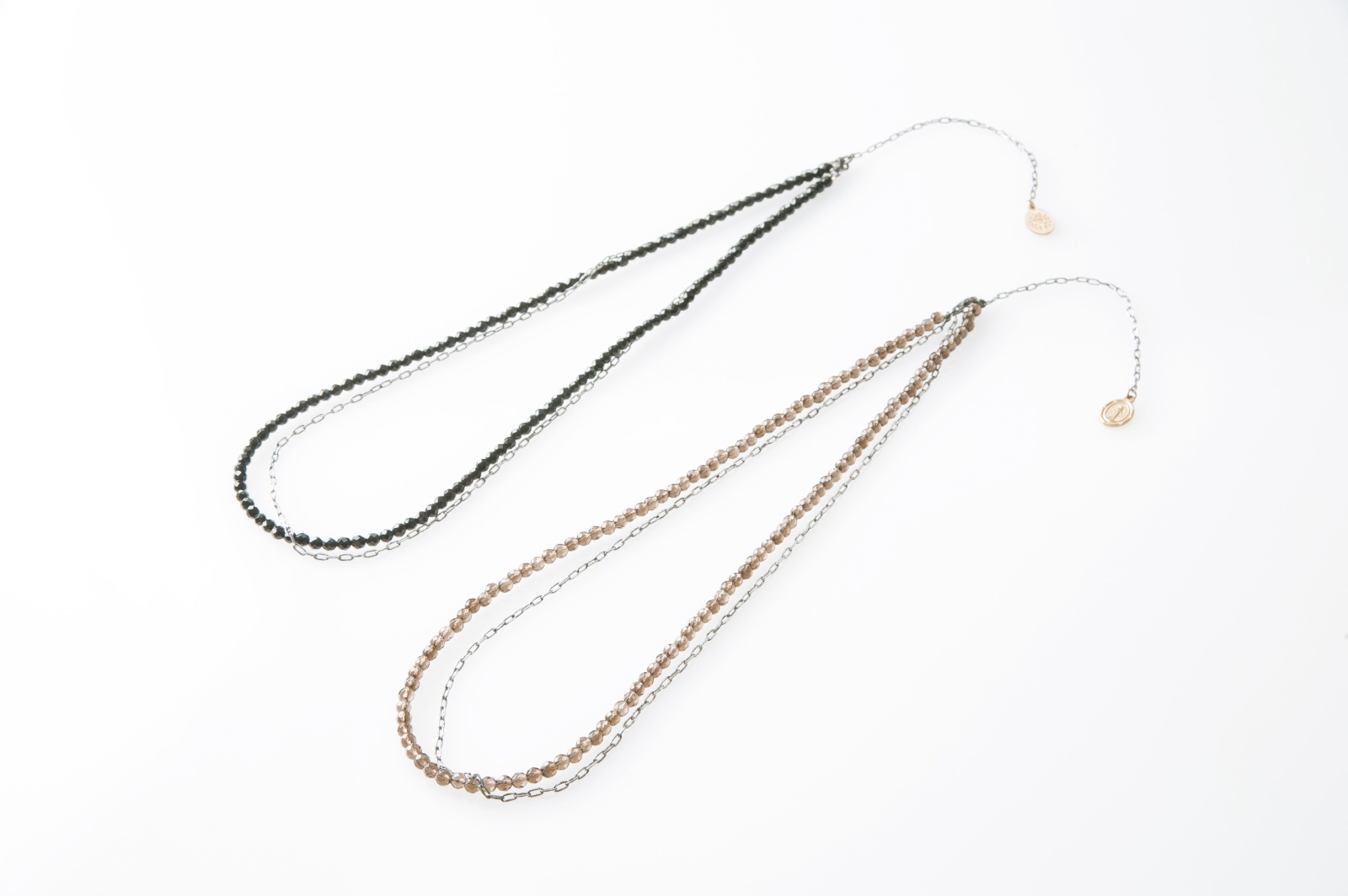 4mmの32面カットを施した美しい光を持つ天然石とアズキ型の鈍い光を持つシルバーチェーンのコンビタイプのダブルタイプネックレス。