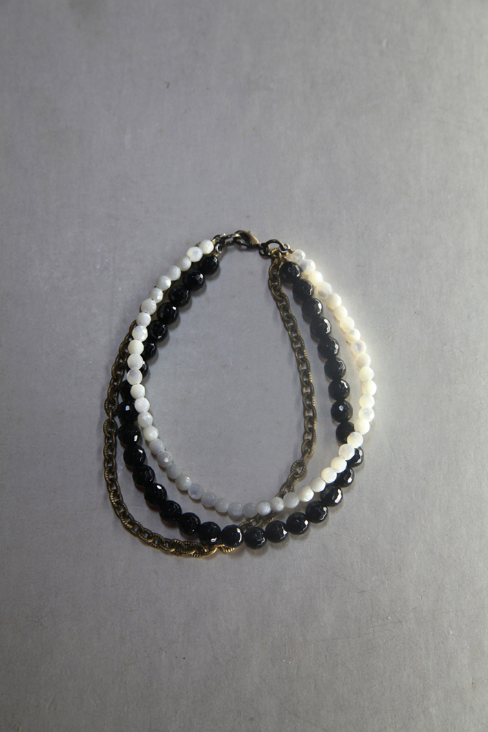 6mmの32面カット天然石と4mmの石がダブルの仕様になっていてそこにさらにブラス製のチェーンが付属するタイプです。