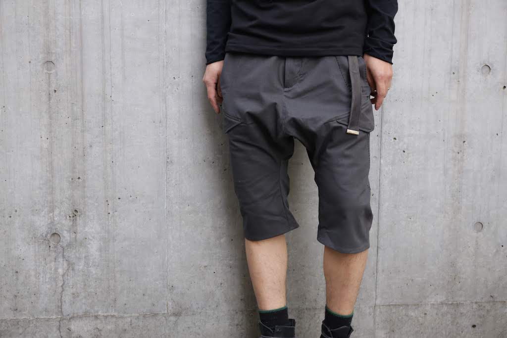 実際にこのベルトを着用したパンツルックを屋外で撮影した。