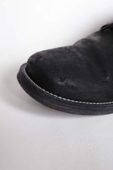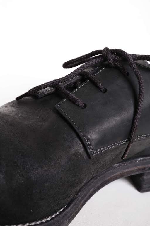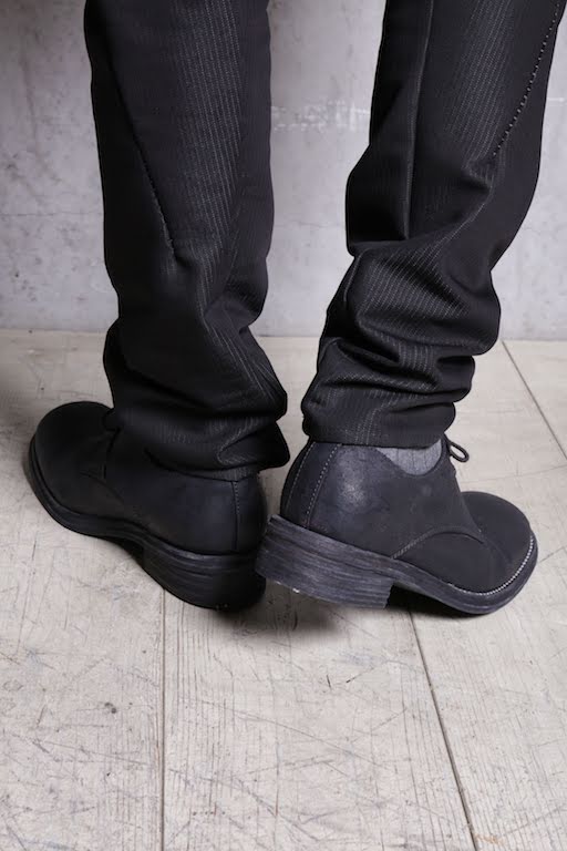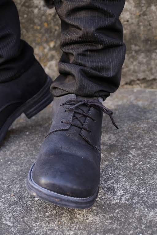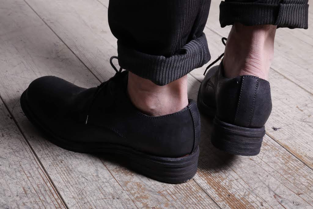 重厚な革を用いたヘヴィでストイックなシューズ。