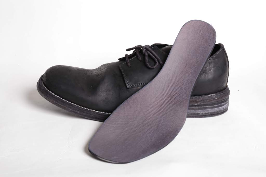 インソールの表面には本革を圧着接着しており、このブランドが抱える革への強いこだわりと特別感を匂わせる構築となっている。
