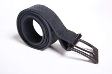 厚みのある革には確かな重量感を感じる事が出来、ベルトの裏面は荒々しく毛羽立った面で構成されている。