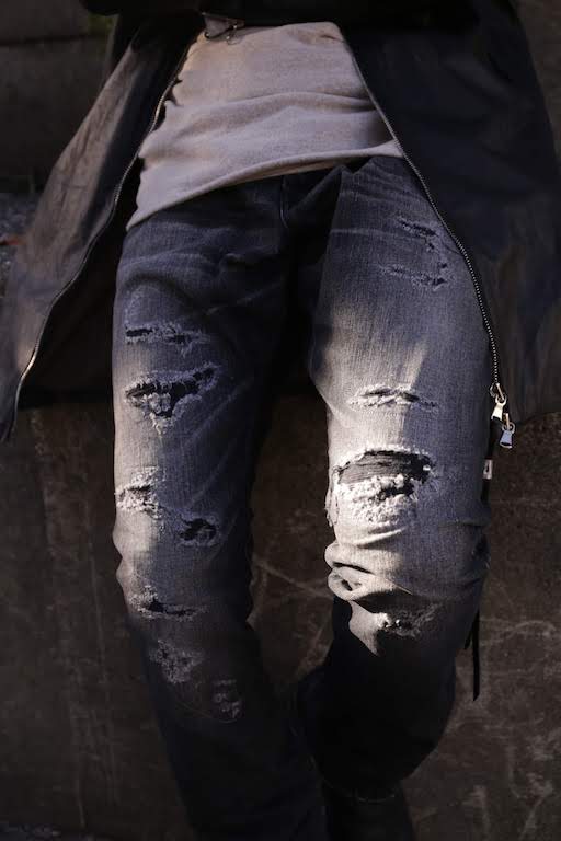 デニムパンツで退廃的な印象を加えこのブランドが考える今季の世界観を体現したスタイリングとなります。