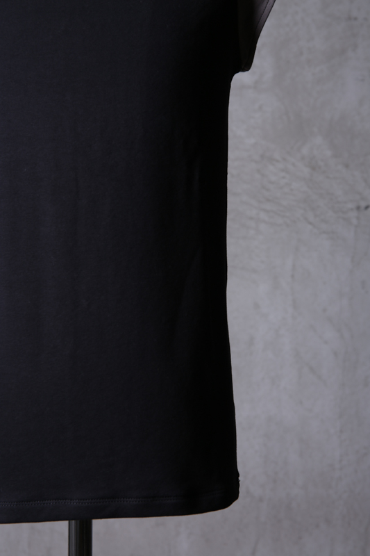 細身のシルエットフォルムで構築されており、過度な装飾を一切排除した無機質なデザインとなっているため様々なスタイルのカットソーとして万能感のある使い勝手を実現する作品。