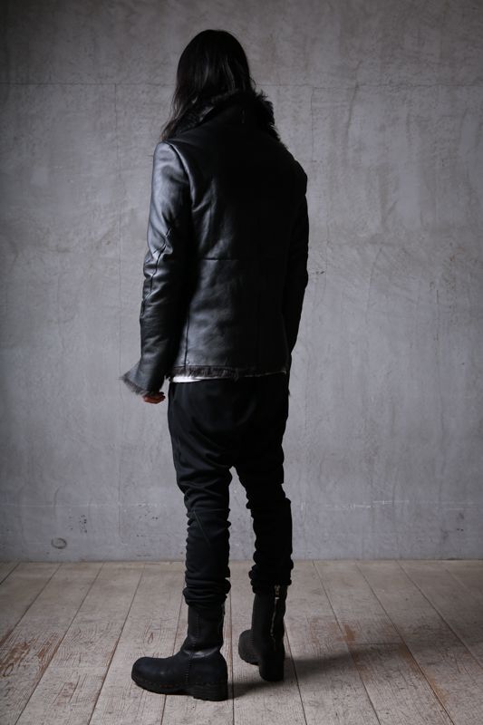 ご覧の通りボリュームのあるムートンのブルゾンとの組み合わせであっても足元の存在感は決して負けていない。