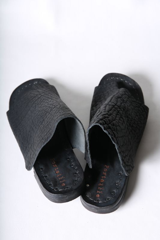 Portaille / ポルタユ / Sab-MC / Bull Shrink leather Sandals [BLACK]