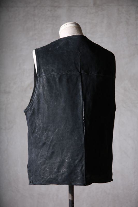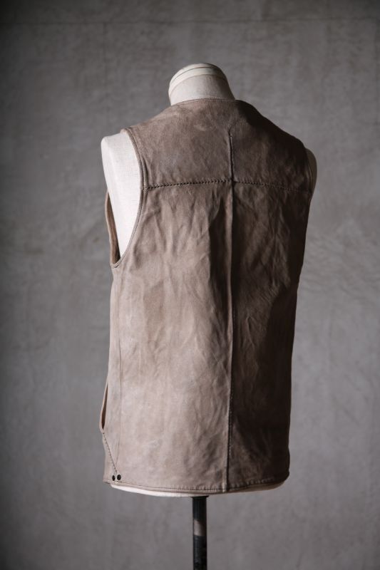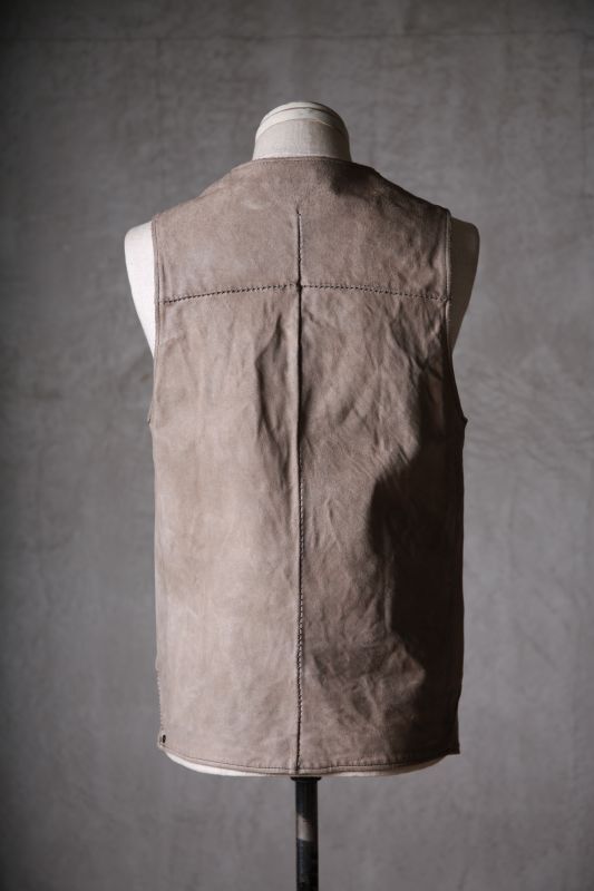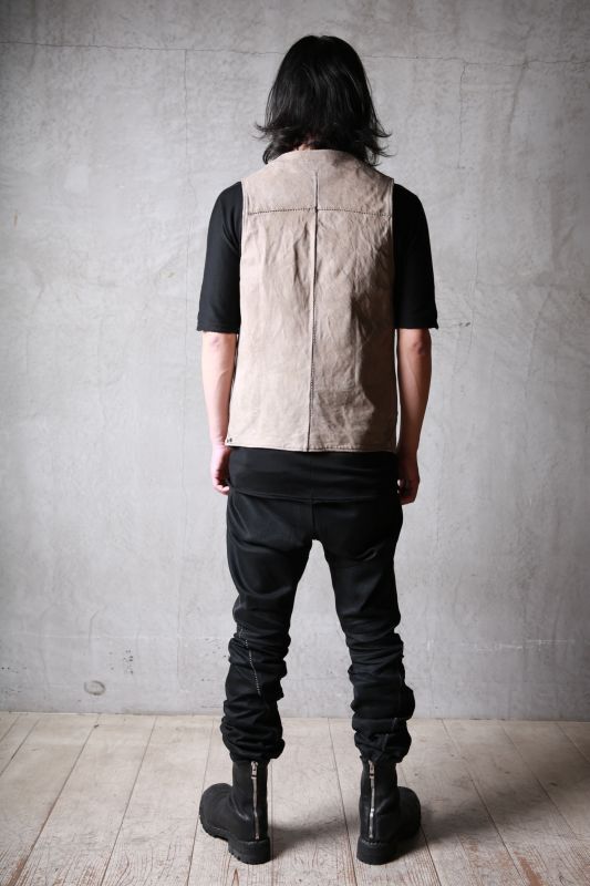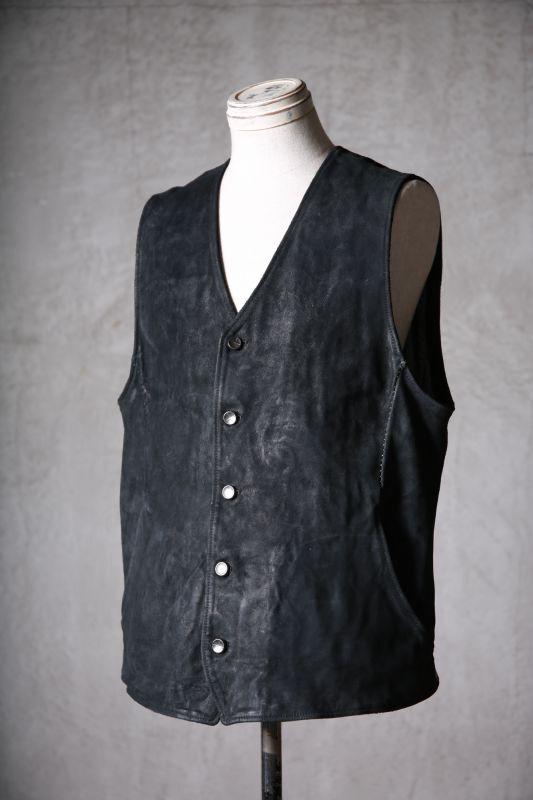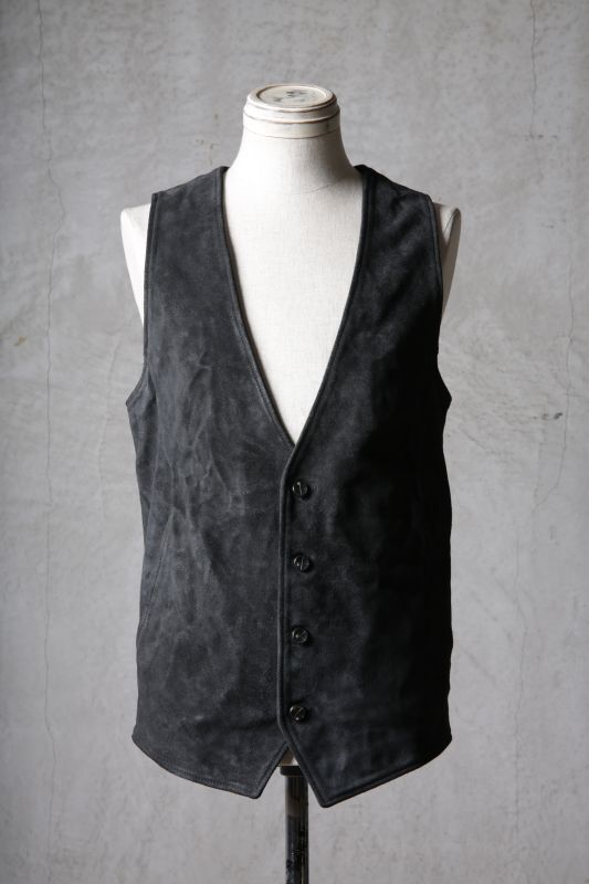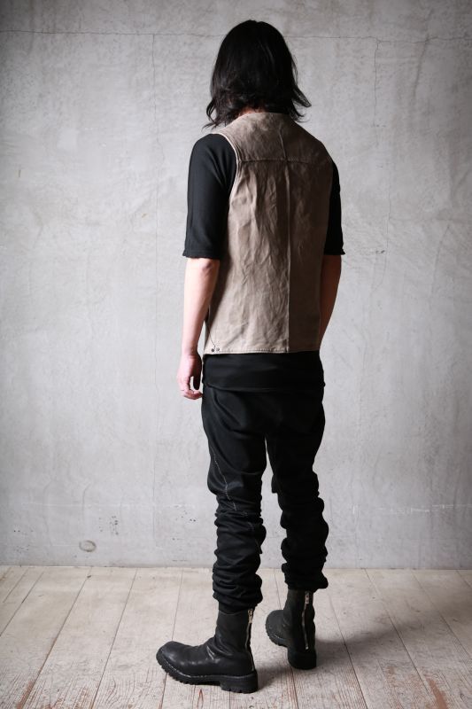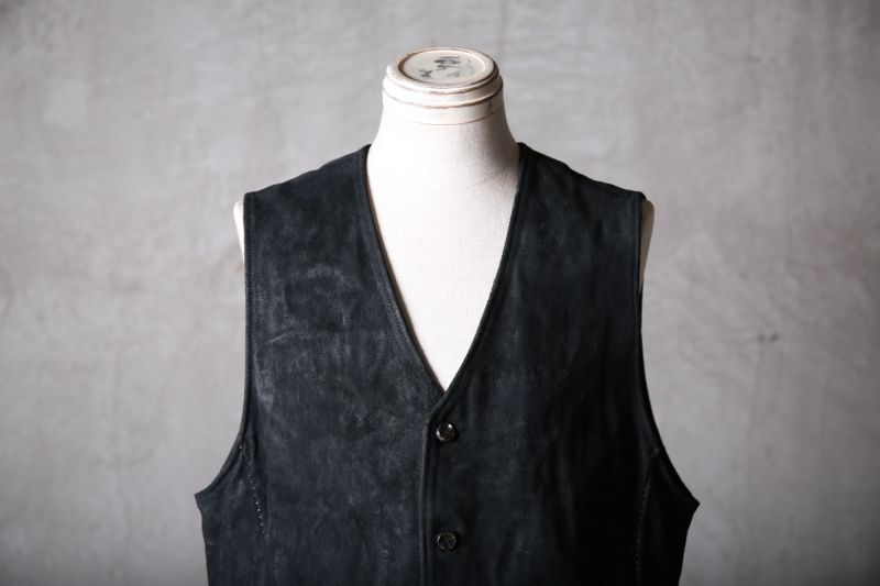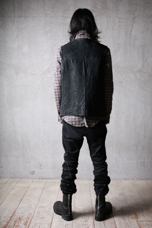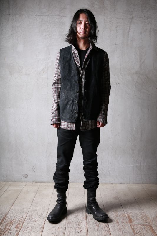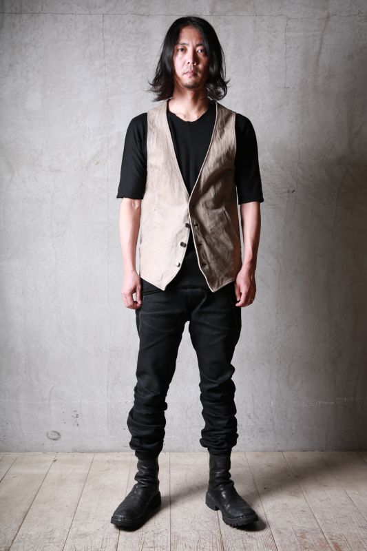 特に真夏などはどうしてもレザーウェアの着用が敬遠される中で唯一と言って良いほどその着用が許されるアイテムではないでしょうか?ブランドデザイナーのOGAWA氏やスタッフも「なんだかんだ1年で1番着ているのはコレかもね」というフレーズが印象的。シンプルな4つボタンの構造で普遍的なデザイン。夏場であればシャツの上、春秋はロングスリーブやシャツの上、秋〜冬はアウターのインナーとしても重宝するのが大きなストロングポイント。ぜひ1着、「気がつけば育っている」そんな身近な存在なのがまたニクいヤツですね。