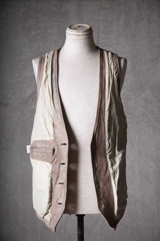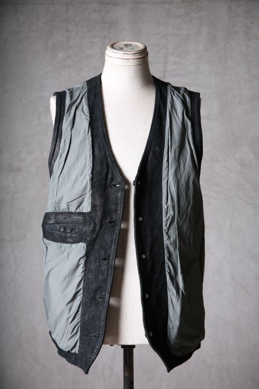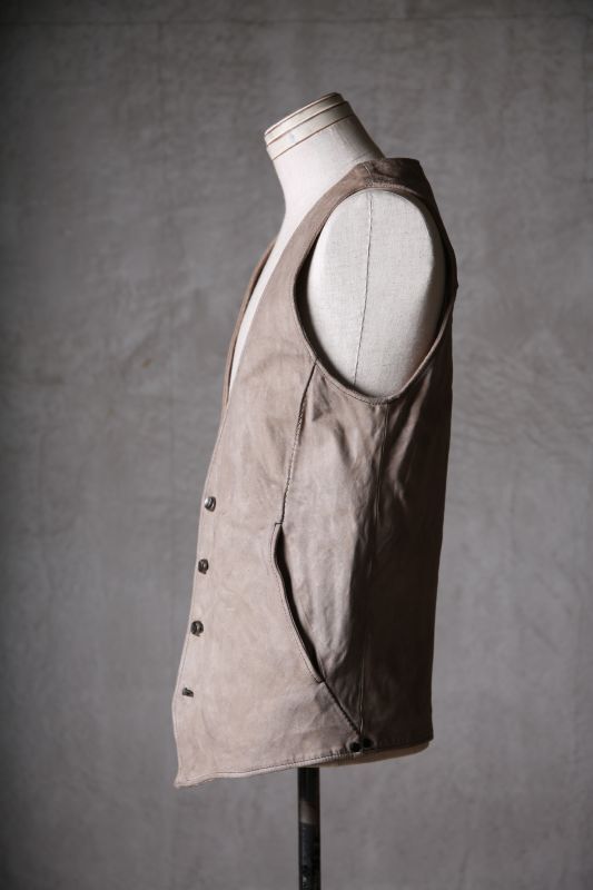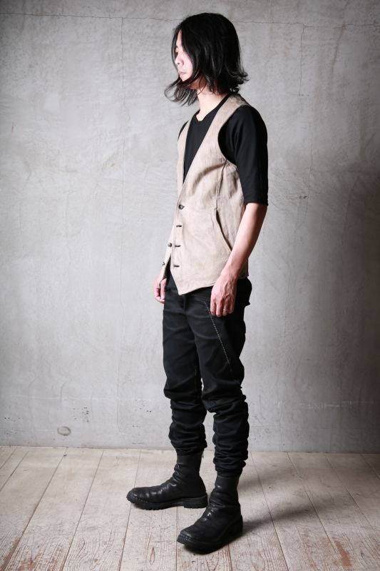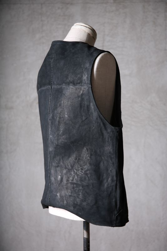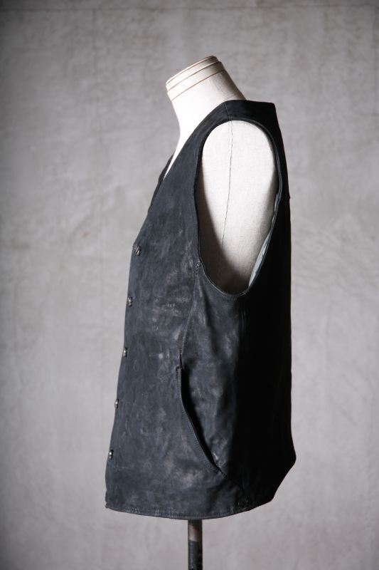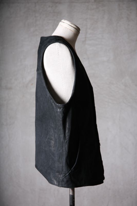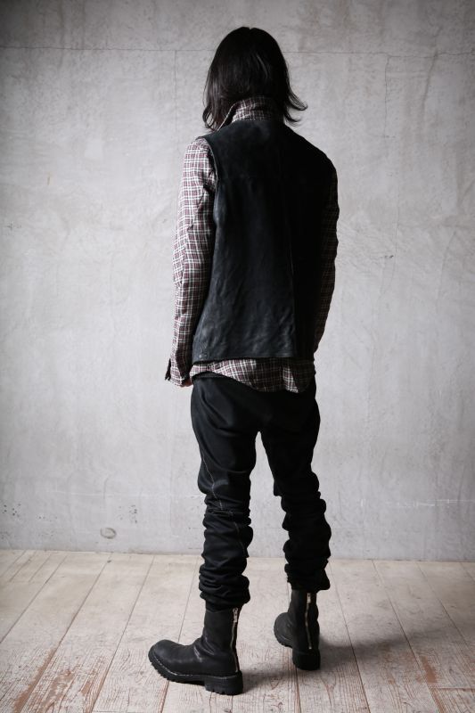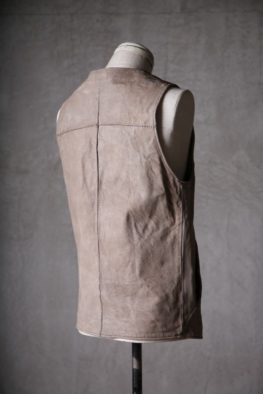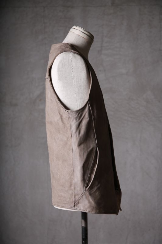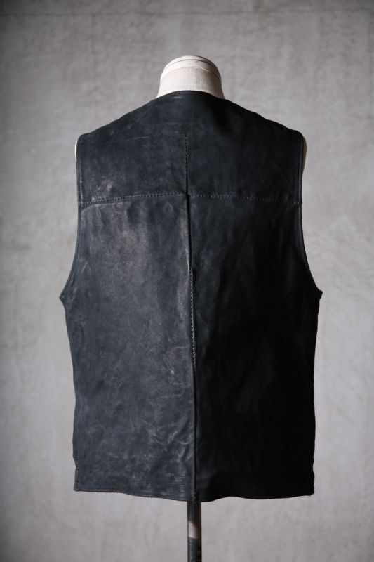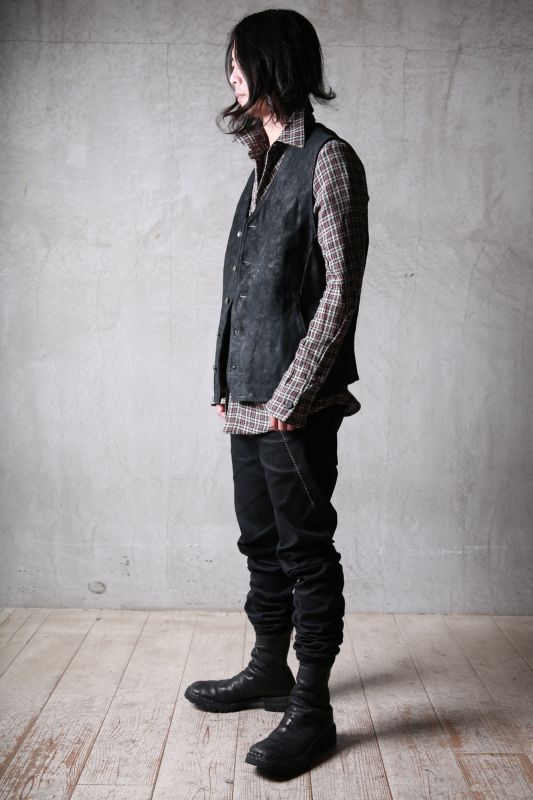 特に真夏などはどうしてもレザーウェアの着用が敬遠される中で唯一と言って良いほどその着用が許されるアイテムではないでしょうか?ブランドデザイナーのOGAWA氏やスタッフも「なんだかんだ1年で1番着ているのはコレかもね」というフレーズが印象的。シンプルな4つボタンの構造で普遍的なデザイン。夏場であればシャツの上、春秋はロングスリーブやシャツの上、秋〜冬はアウターのインナーとしても重宝するのが大きなストロングポイント。ぜひ1着、「気がつけば育っている」そんな身近な存在なのがまたニクいヤツですね。
