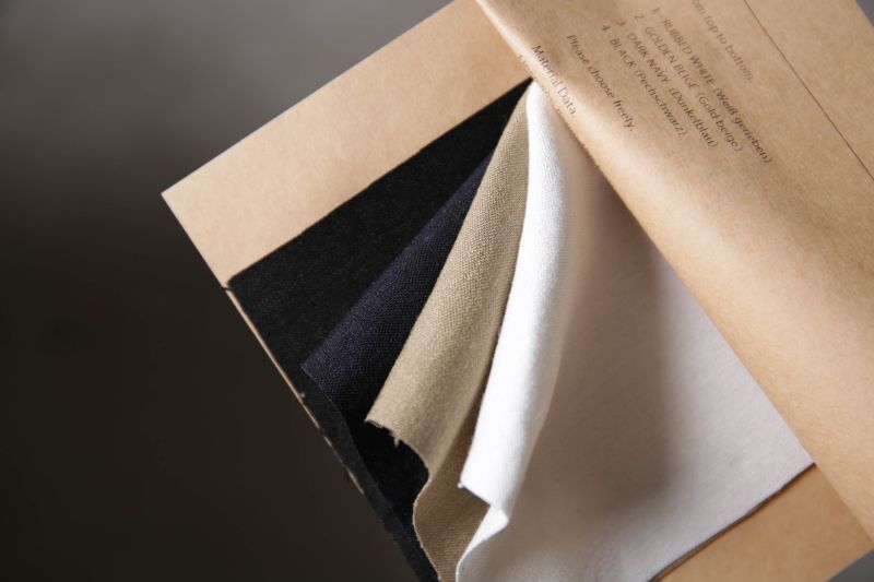 実際に使用される生地の見本をお手元に置いてコレクションを楽しんで頂けます