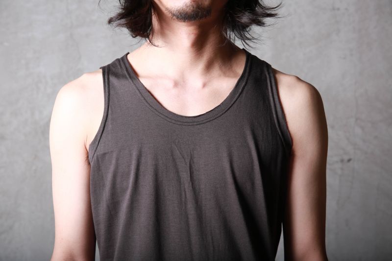レイヤードスタイルに欠かすことの出来ないカットソー群はブランド創設からリリースの続く リヨセル(天然繊維由来の再生マテリアル使用)・コットン のタンクトップとドルマンスリーブ構造のセミロング丈のTシャツ