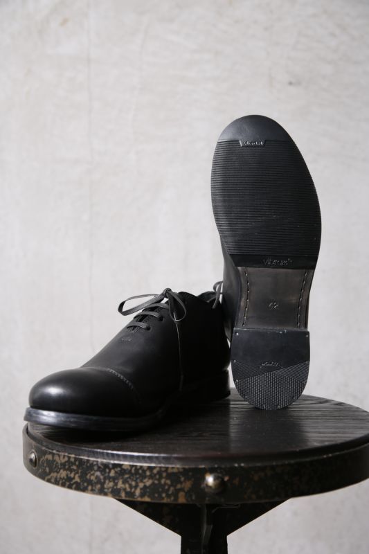 アッパー素材には普遍的であり多量のOILを含ませたWAX HORSEを選ぶことでスーツに合わせた際にも適度な光沢感とドレッシーな匂いを演出