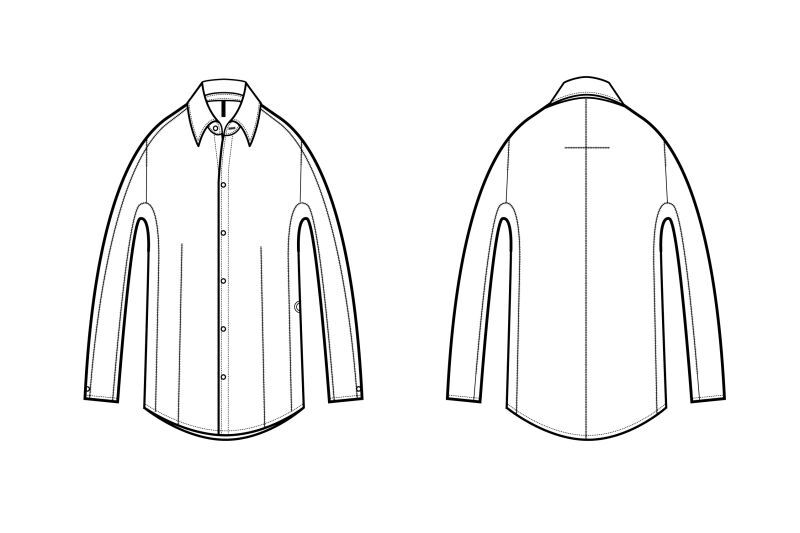 カフスを持たない袖先のフラット構造によりインナーとしてもアウターとしても着用出来るようにこの言葉をさらに昇華したシャツとなってる