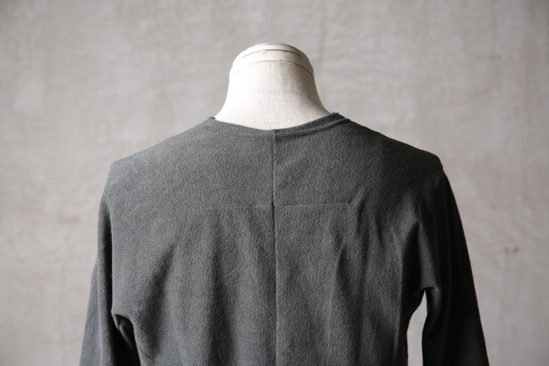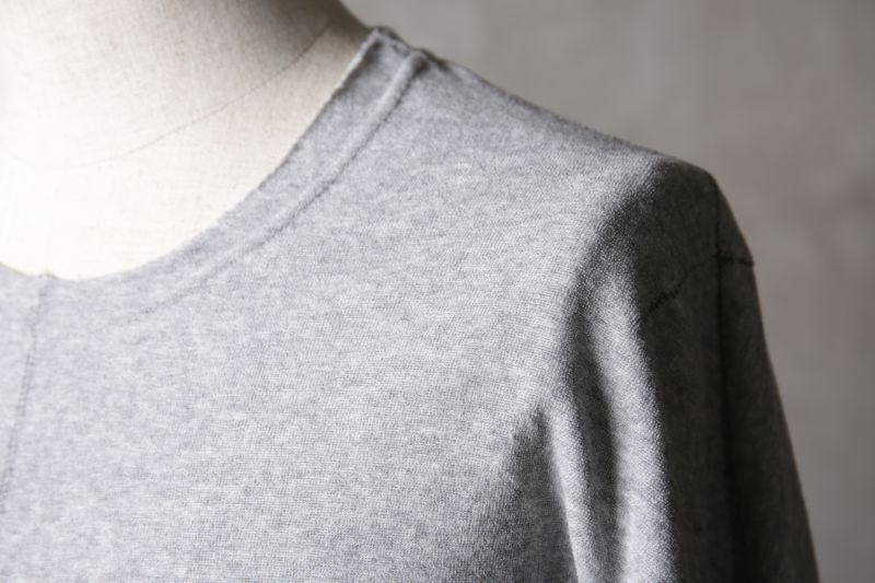 ニットパターンに採用したハーヴェストスリーブの構造体は稀有なもので各所にニット用のオーバーロックを施すことで高い縫製技術を窺わせる 吸水性の高いパイル素材を用いることで湿度の高い日本の夏を快適に過ごすことが可能となる