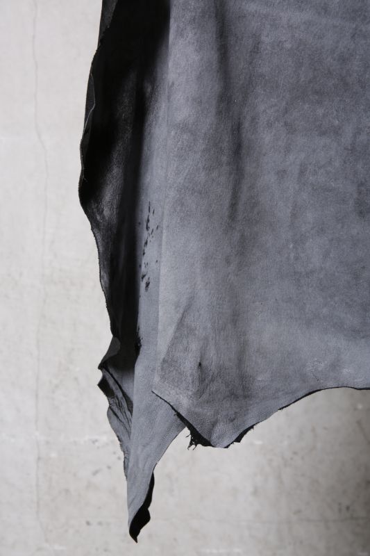 ORIGINAL “ NATIVE DEER LEATHER “ 「この先」への象徴と位置づけるオリジナルレザー 原皮はデザイナーの出身地である長野県のものを使用 塩漬け前のまさしく原皮そのものからデザイナーが直接買い付け、兵庫県姫路市の専属タンナーにて仕上げた 原皮そのものから完全なるオリジナルレザーとしてこのブランドの未来性をも描く重要なファクターを含んだ素材となる * 革の厚みや傷、穴等すべて1点モノとなります(80〜100ds程度の大きさが中心となります)