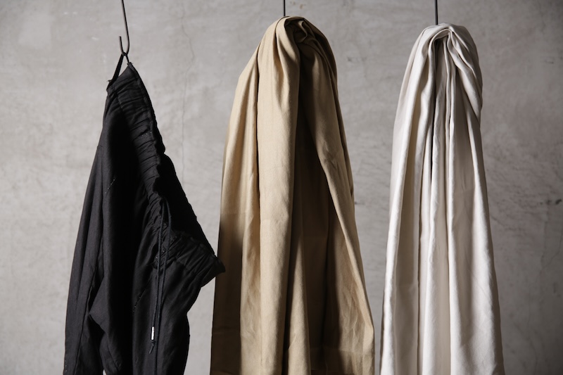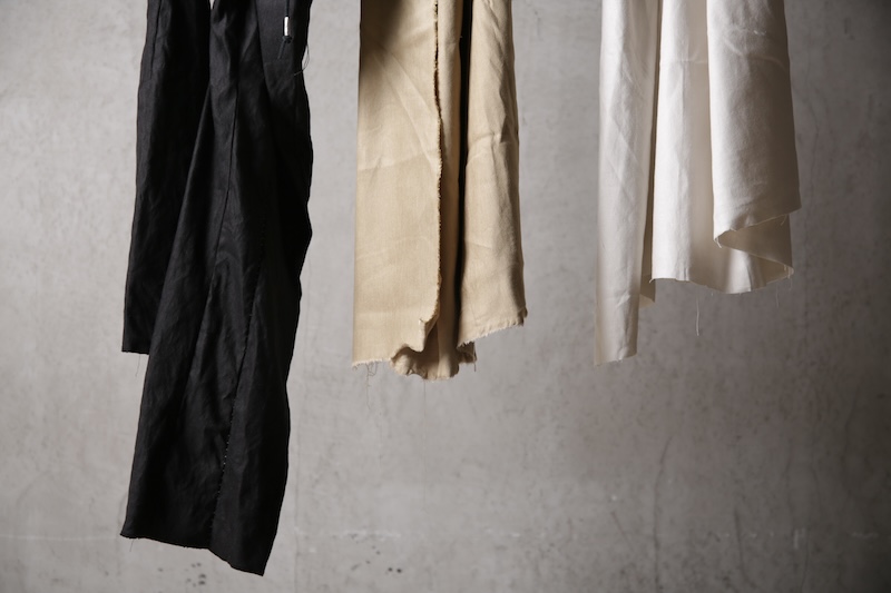 圧倒的にそして普遍的に愛される生地感を感じてもらえると思う リネンならではの深く刻まれるシワ残りが上質さとこのブランド持つ個性とも言える退廃さを演出しレーヨンが持つその独特に鈍く光る光沢はエロティシズムをくすぐる最上質の素材感であると断言出来る