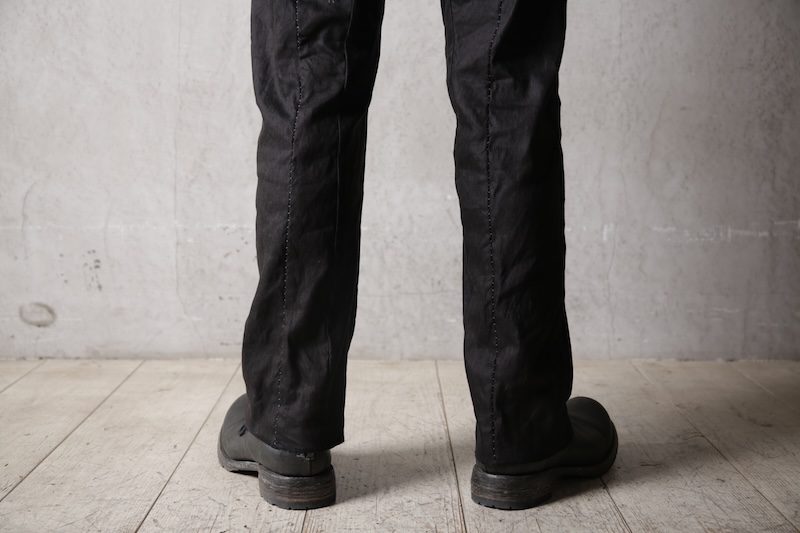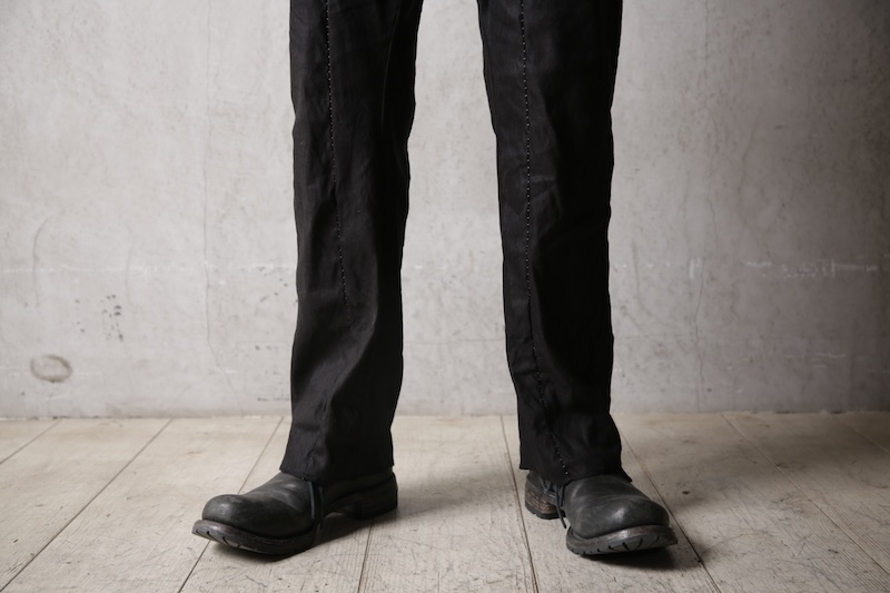 無機構という Wir Lineal 特有の構築から生み出されるワイドパンツはその構造は全く持って他と一線を画しルーズなシルエット感ながらもその実このパンツは実際に穿くとそれはラフとは無縁でありある種の対岸的なドレス感を生み出していることに驚く。
