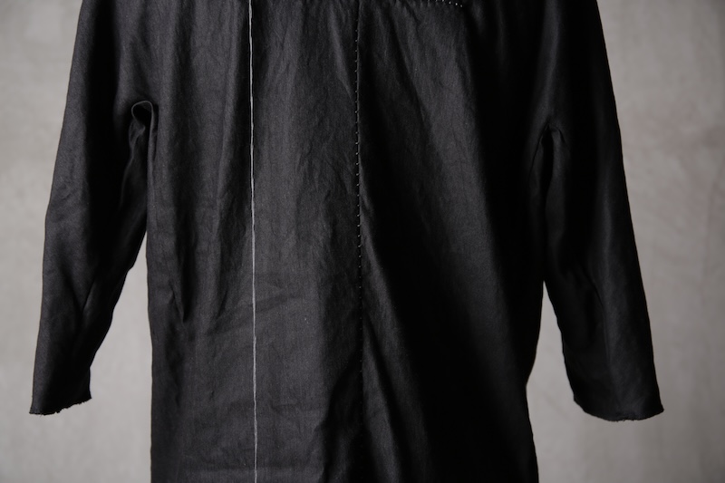 ネック部分にはハの字にシームダーツを用いることでネックの立ち上がりも美しくなっていることと立体性と同時に見栄えとしてのアイコンとしても印象深い