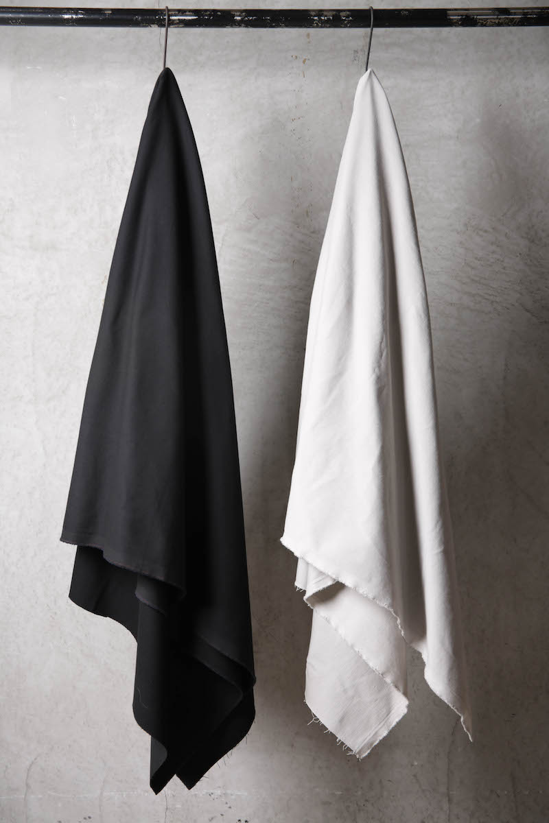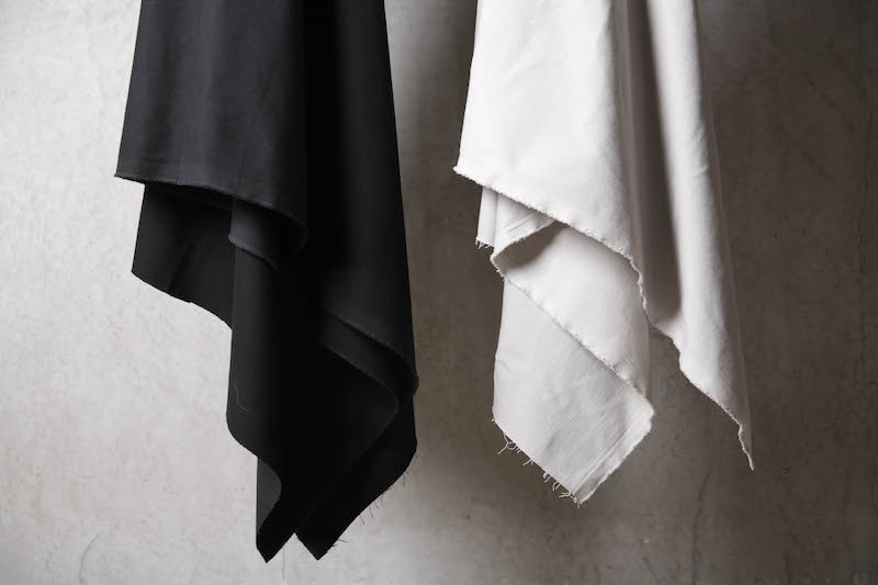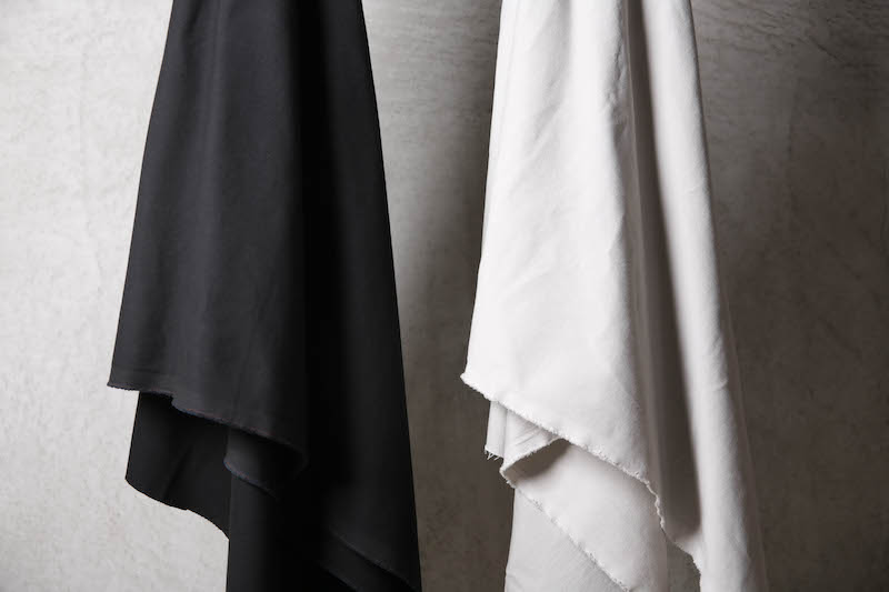 コットンをベースとしながらもレーヨンを含んだ混紡糸特有のドレープのある落ち感と鈍い光沢が美しい素材でその見た目と機能性を兼ね備えた最上質素材。