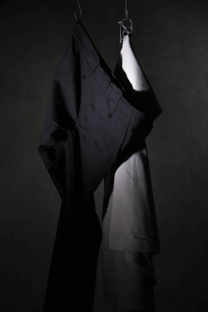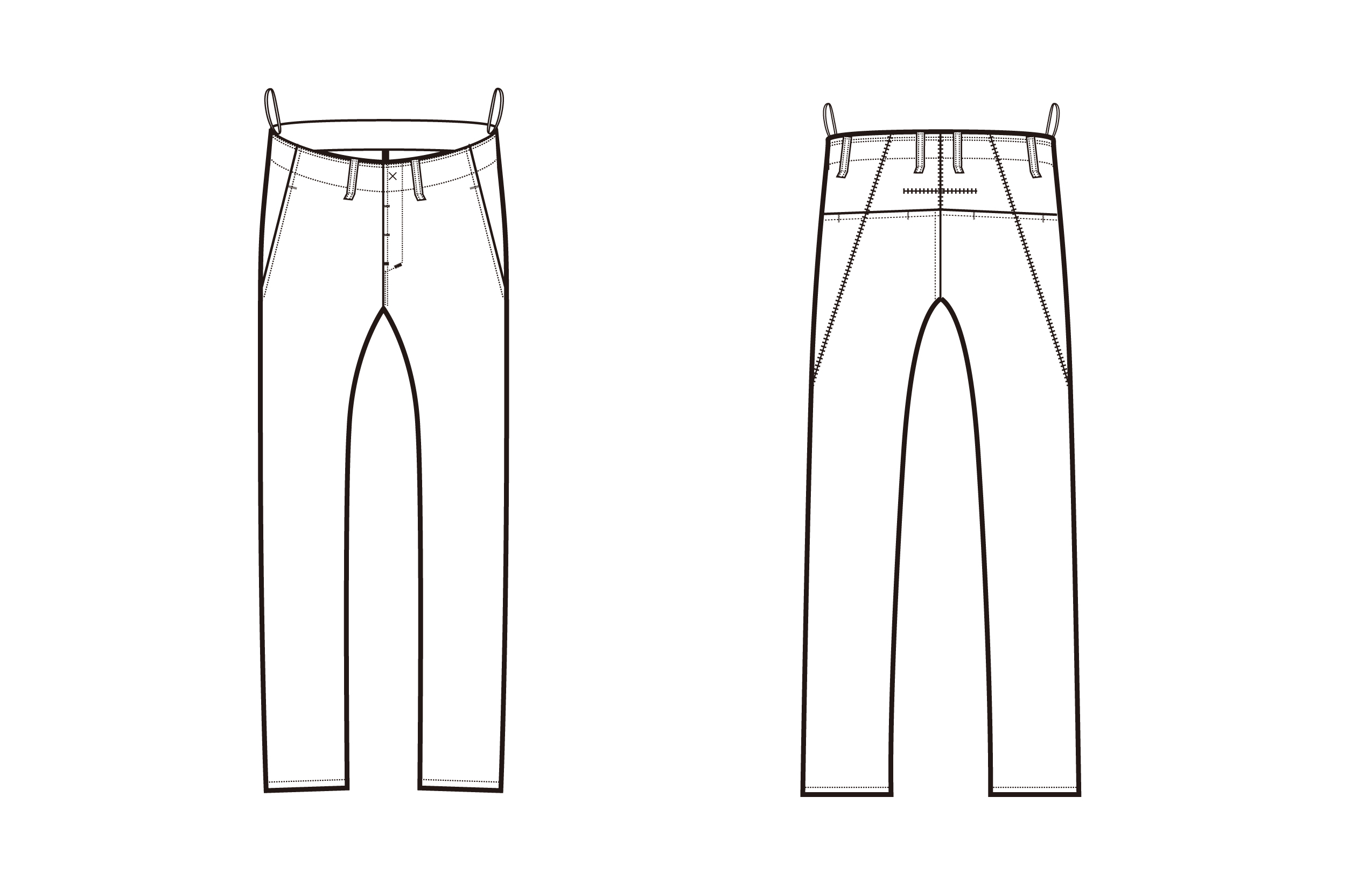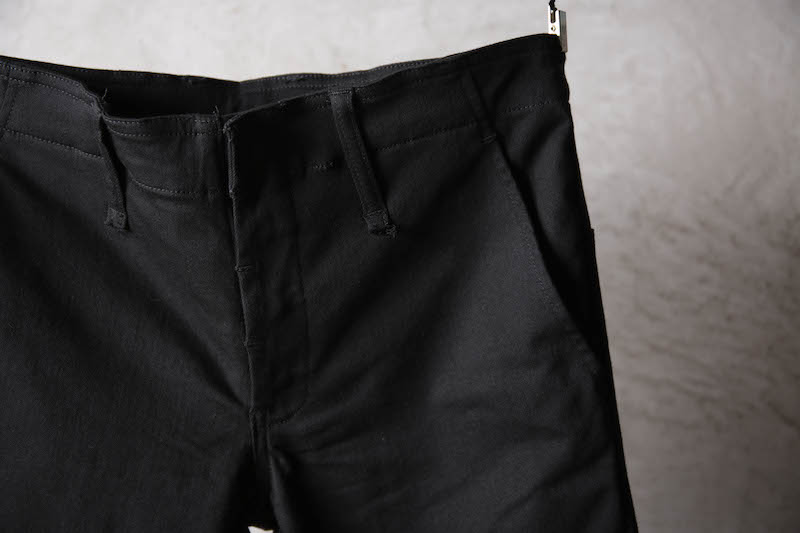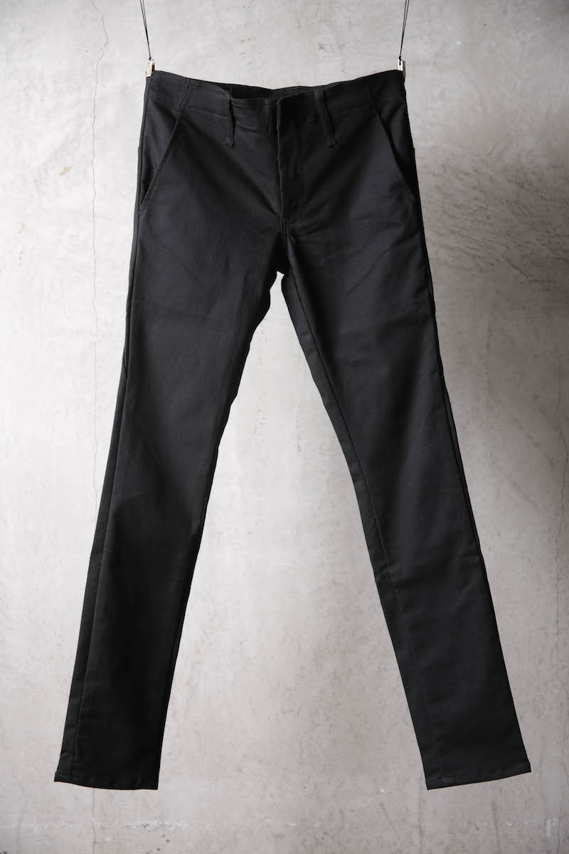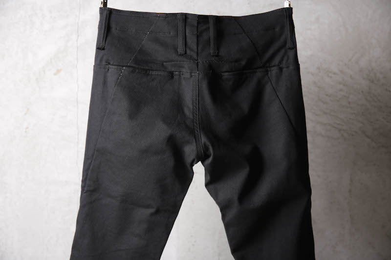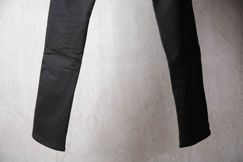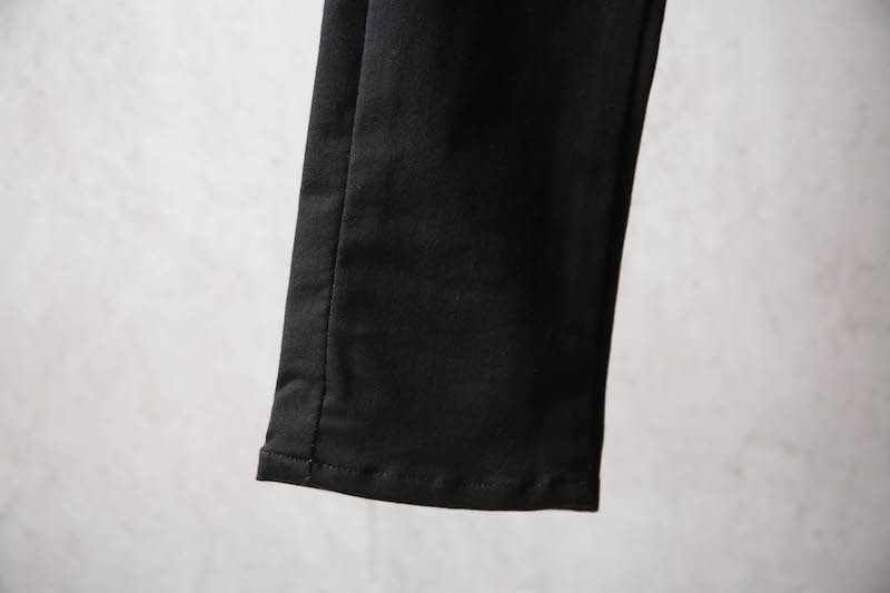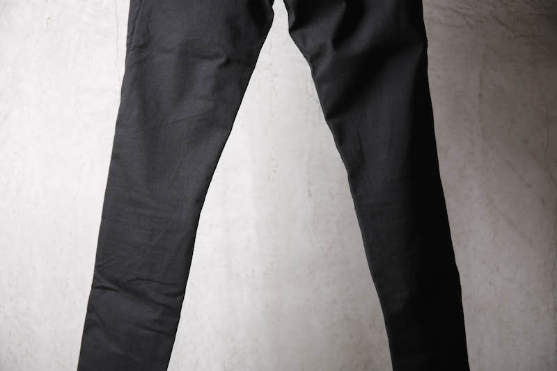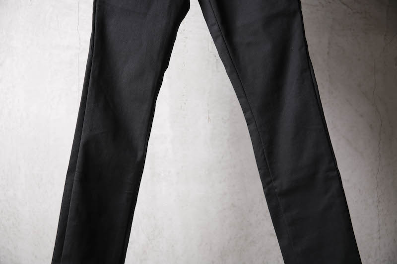 不要でデコラティブな線は不要だと捉え、最後の最後でも引き算を繰り返し、このパンツに関して言えばヒップラインの角度の斜行性のみを残した。シンプルを突き詰めた究極的スリムパンツ。今だからこそこんなパンツが欲しかった。
