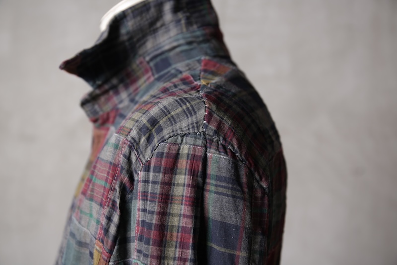 ハーヴェストスリーブの完成型と言える構造でショルダーのアームホール部分にはシームを施しながらも、脇下はハギ目のない1枚続きの構造とすることで実際的な運動可動域を確保することでタイトフォルムの美しいシルエットを崩すことなく完成されたスタイリングを可能にする「シャツは最高のインナーであり最強のアウター」という自己の考えを具現化した。
