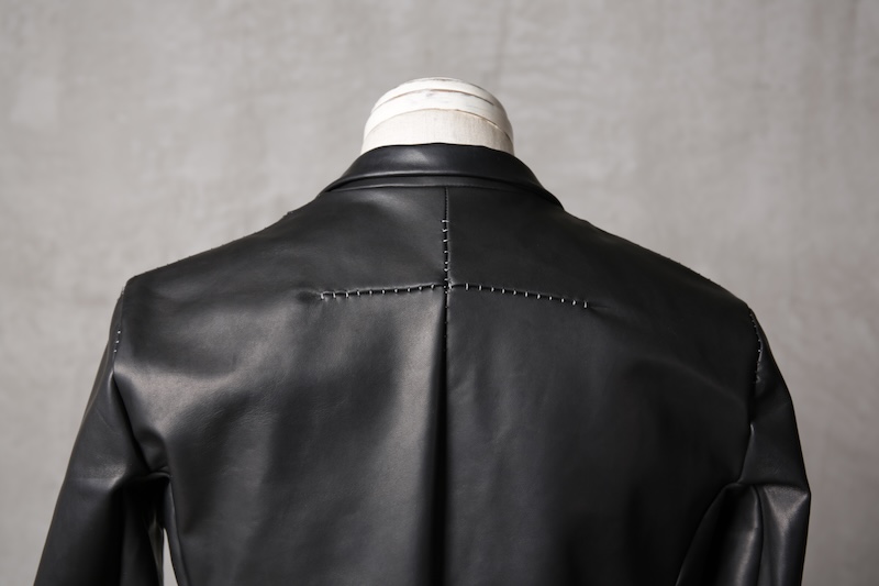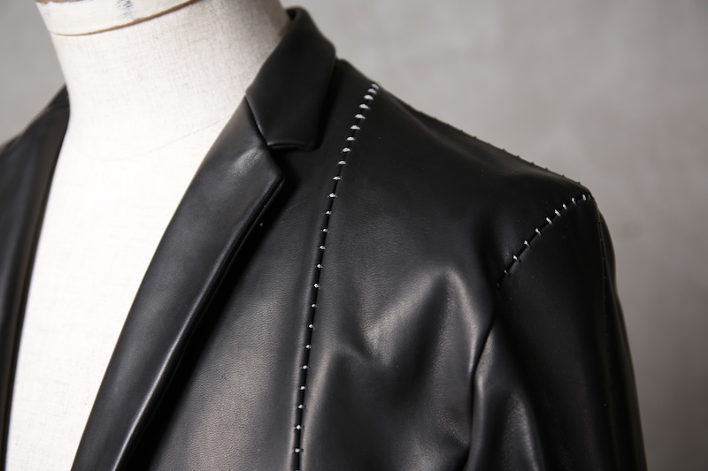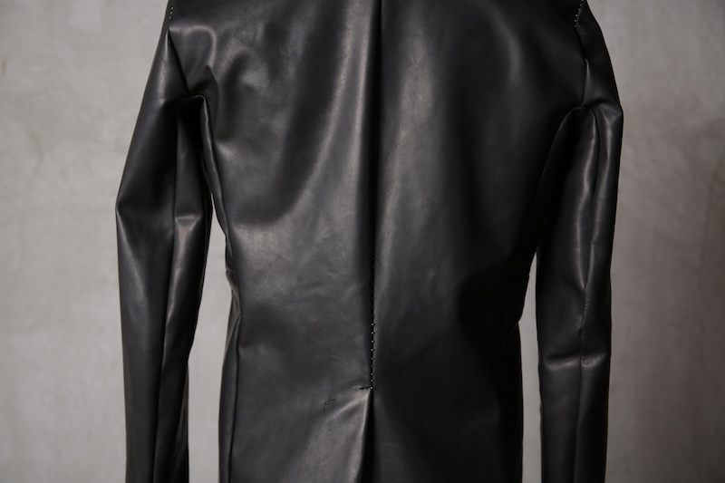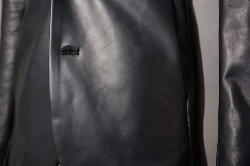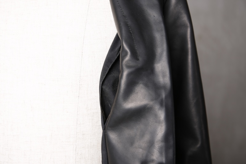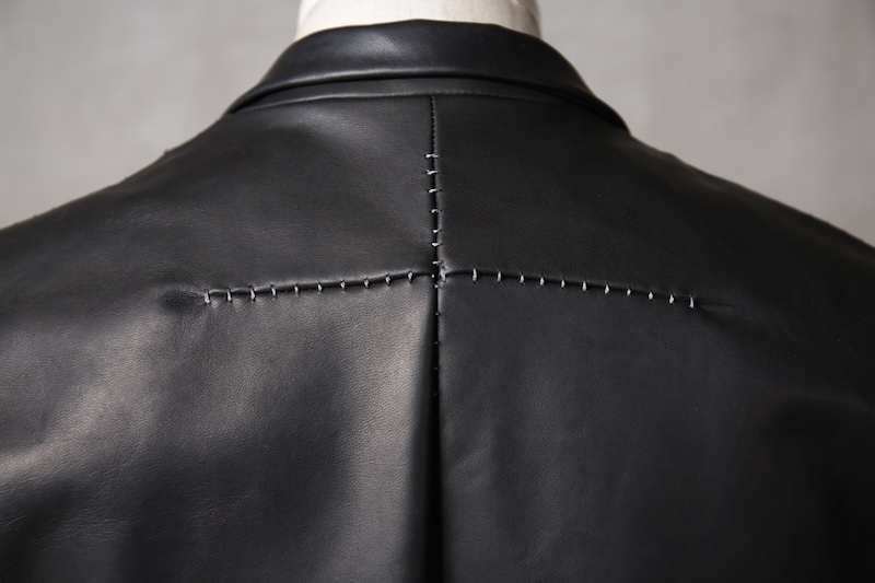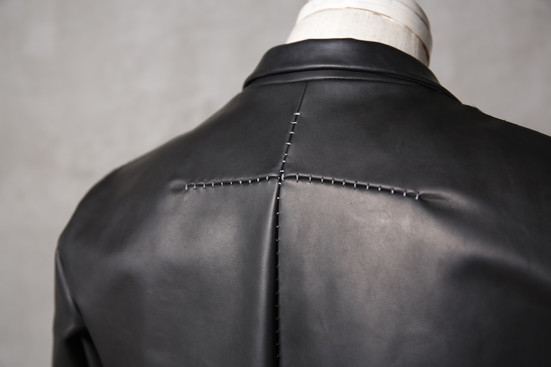 今回はジャケット仕立てに対しての最高の革の厚みである 0.8mm へと削ぎ落とした。