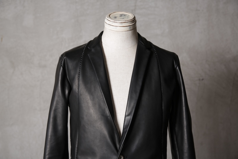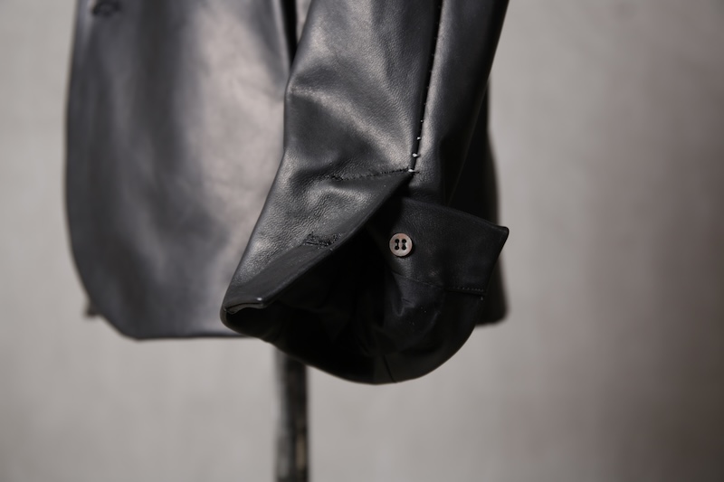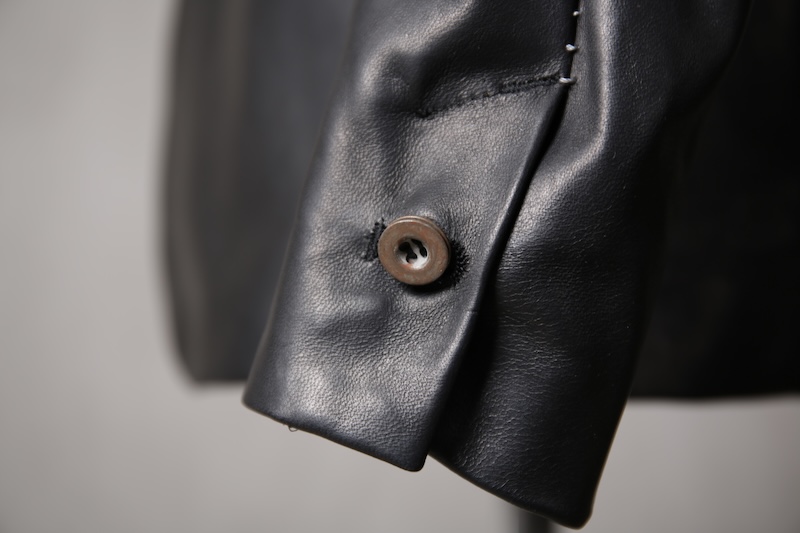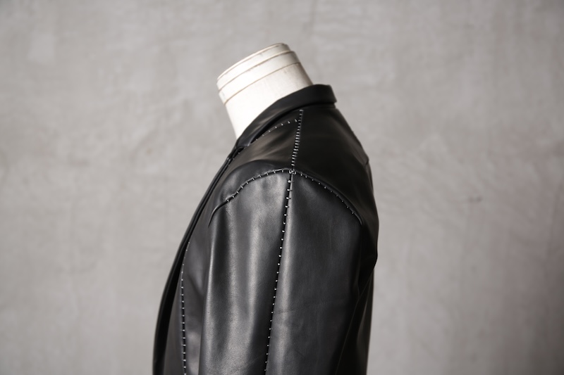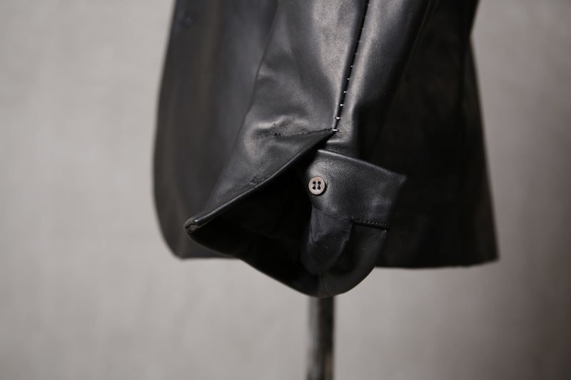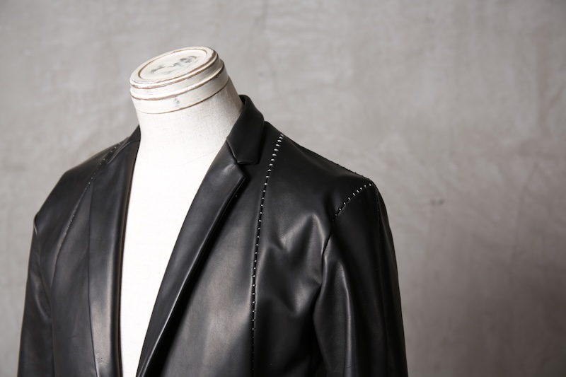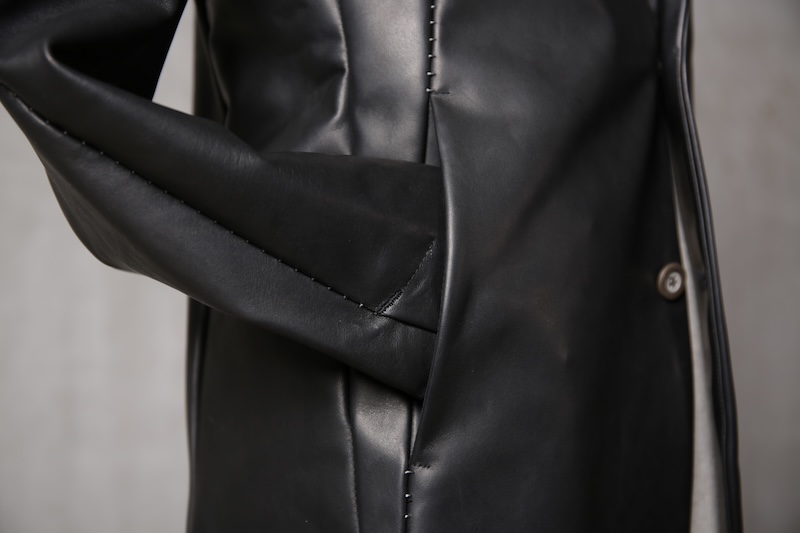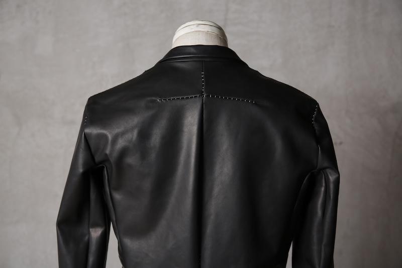 今回はジャケット仕立てに対しての最高の革の厚みである 0.8mm へと削ぎ落とした。