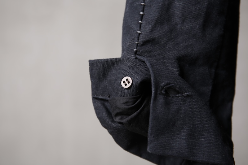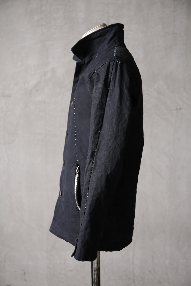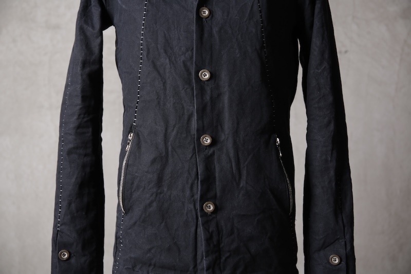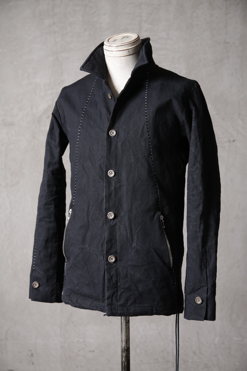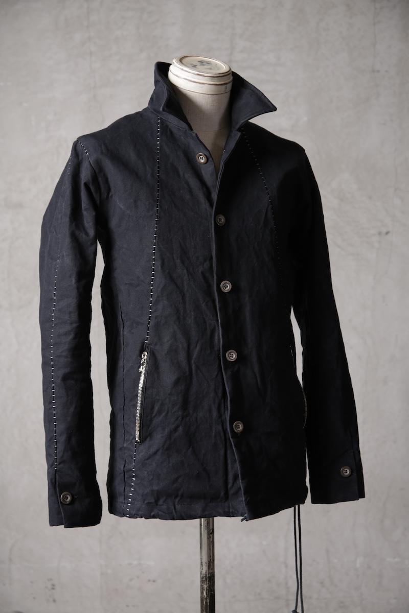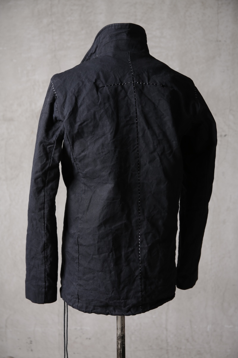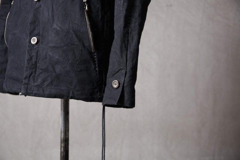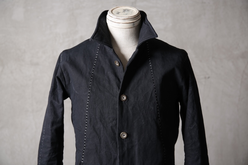 着込むごとにそのシワは深く刻まれ、またワックスが経年で擦り始めることでその表情自体に陰影が生まれることで布帛ながらもレザーやデニムと同様に育っていくことを味わってもらえる素材として完成している。ノンストレッチでもあり決して着用しやすい素材ではないからこそ、愛情が深く刻まれていくのではないだろうかと考える。
