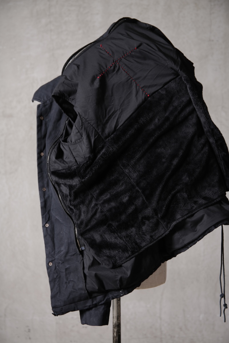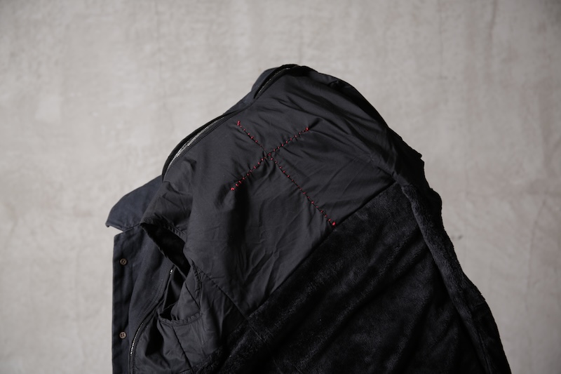1番の見どころは内側の構造となっており、3WAYシーズンに対応出来るようにライナー付きの構造を持ちながらも、ライナー自体を外した際には通常のアウターが持つ裏地が装備されているダブルライナー仕様となっており、見えない部分に1番の重きとパーツパターンを持つ構造となっている。またボディ背面、ダブルライナーのそれぞれと1着の中で合計3箇所に「クロスダーツ(オーバーロック仕様)」が入っていることもこのアイテムをより魅せるアイテムへとして際立たせていることだろう。
