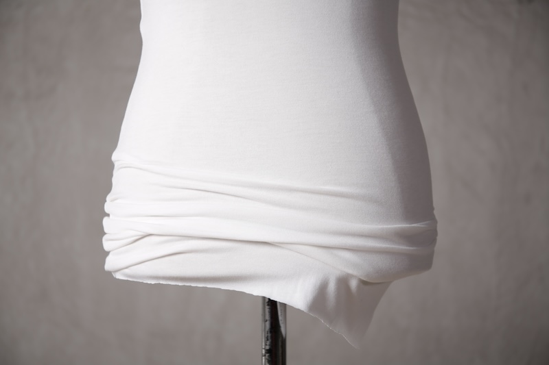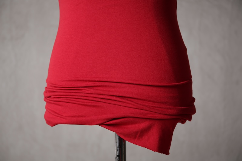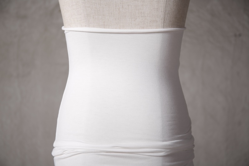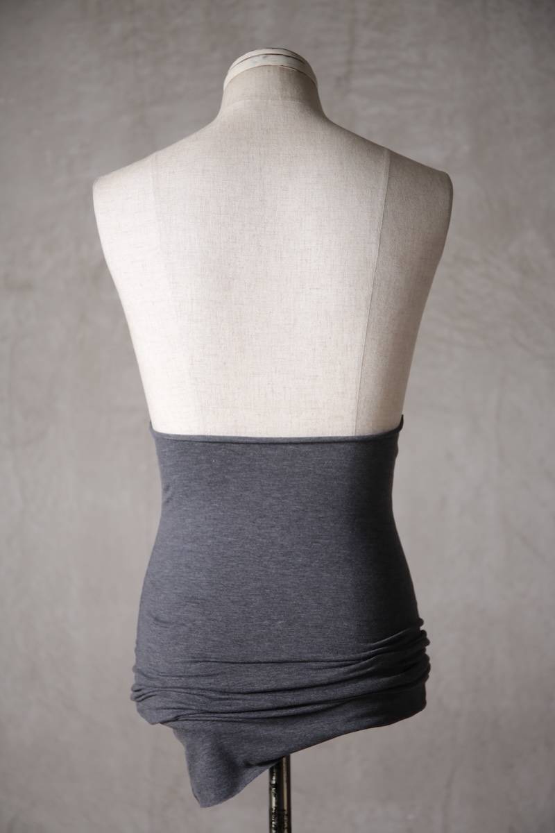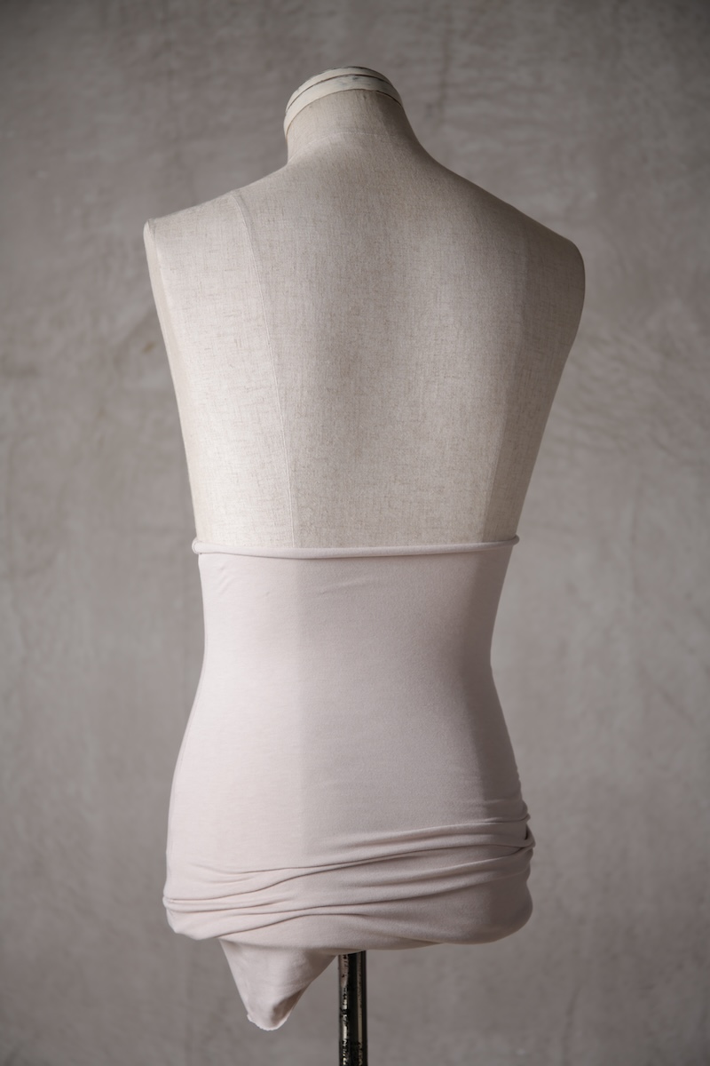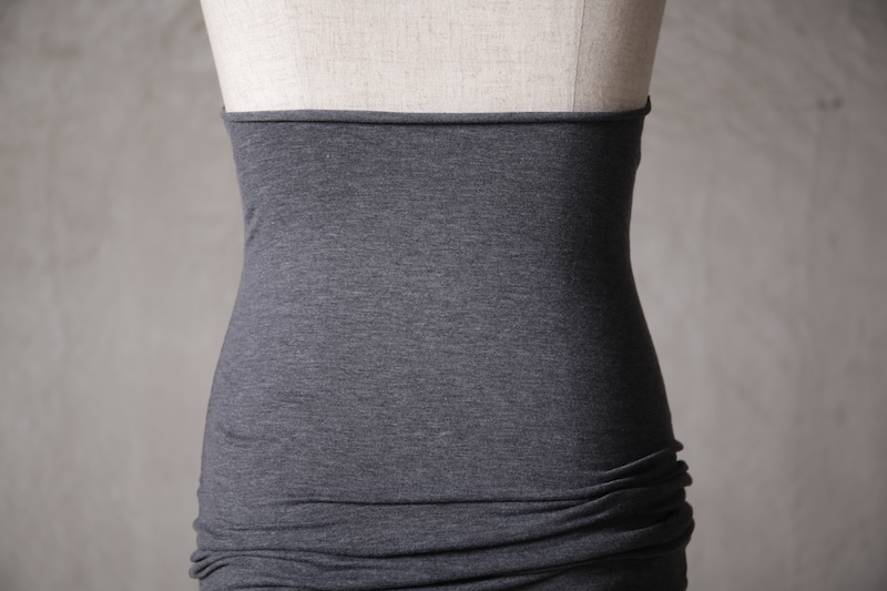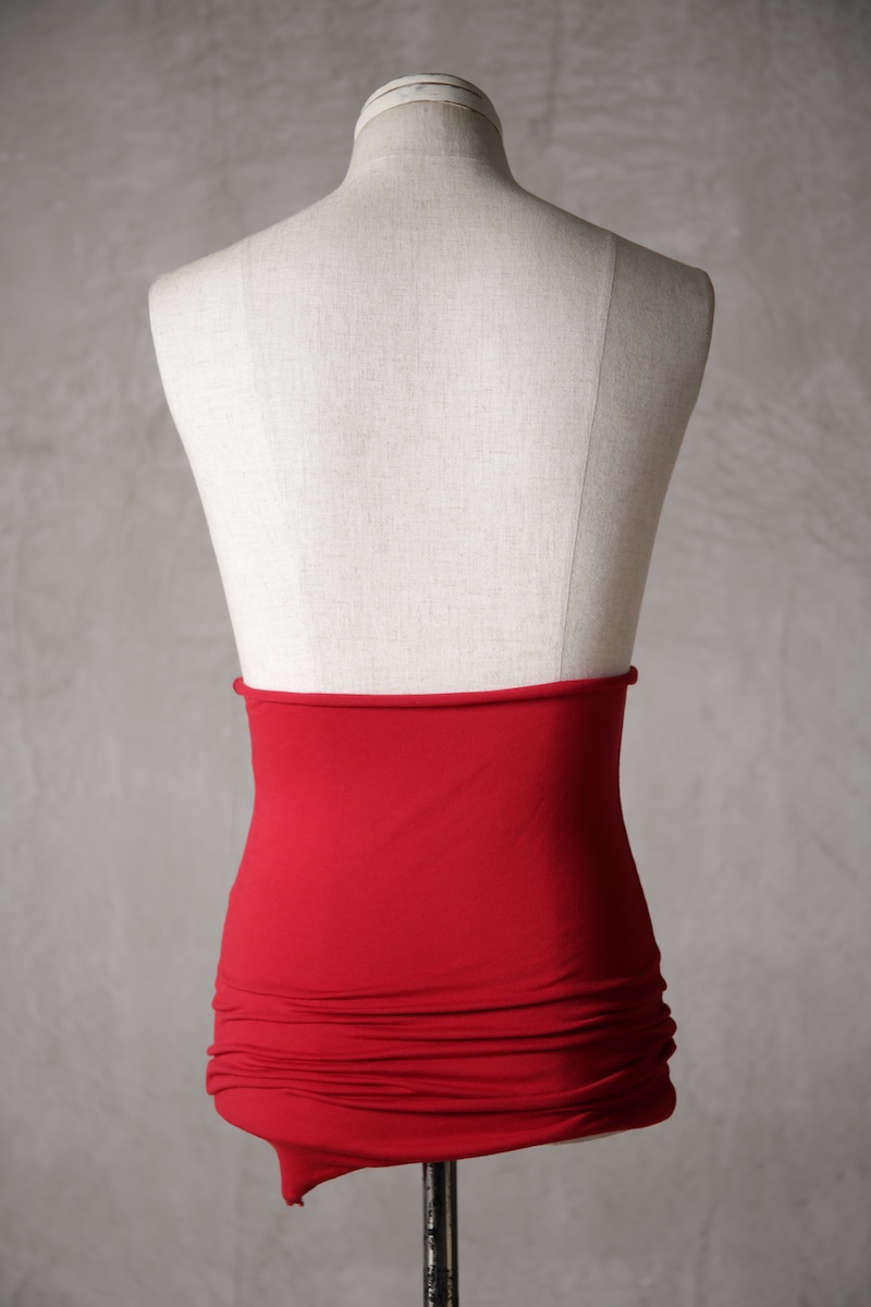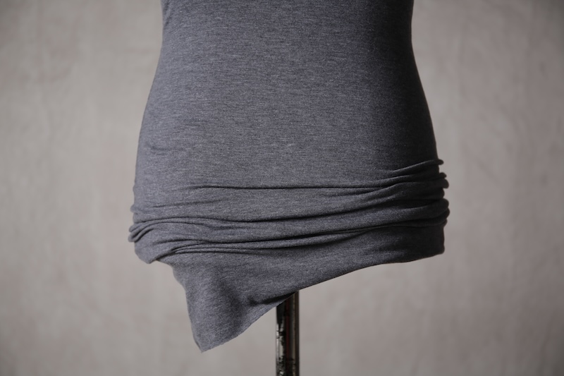 伸縮性のある素材であるからこそ可能なスタイルで使い方によって幅広い可能性を秘めているのが大きな特徴。