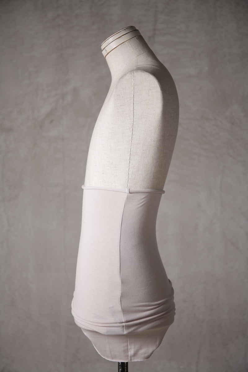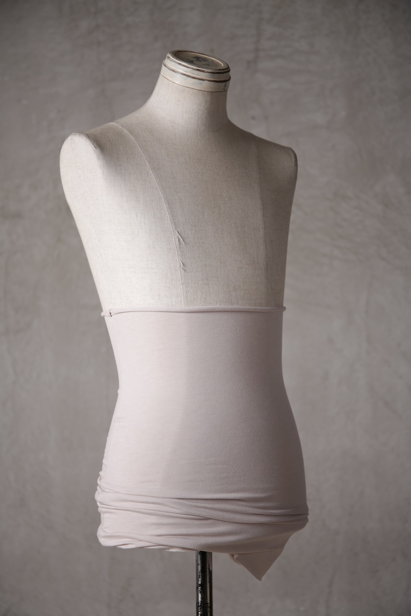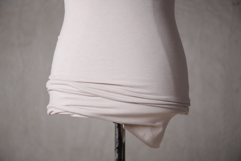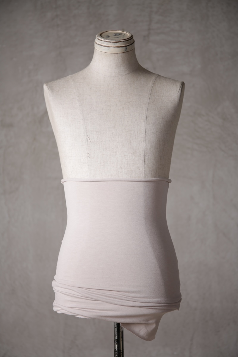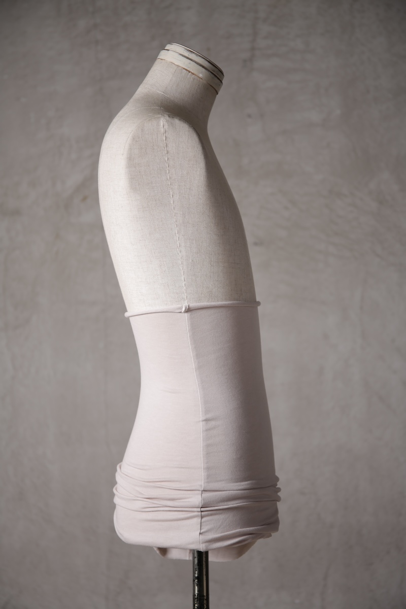 極めて薄手、極薄素材とも呼べるTRブレンドの素材でこのブランドにとってなくてはならないアンダーウェア的な意味合いを持つアイテムに多用される定番素材である。その凶暴なほどの薄さでありながらも圧倒的な伸縮性とキックバック性を持ち肌に吸い付くように纏うことが出来るのが大きな特徴でレイヤードスタイルなどのアイテムに最適な素材である。