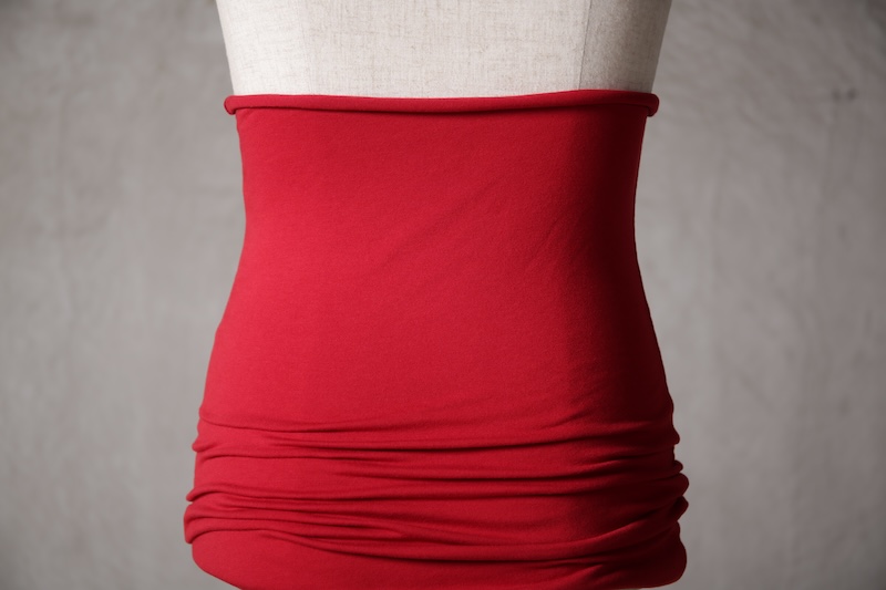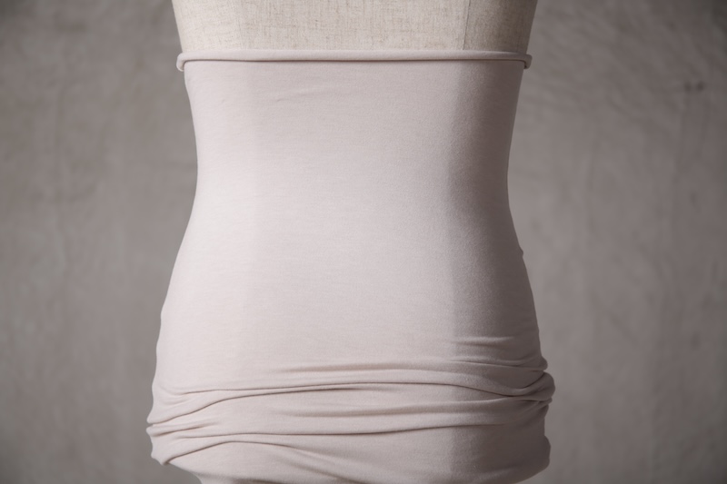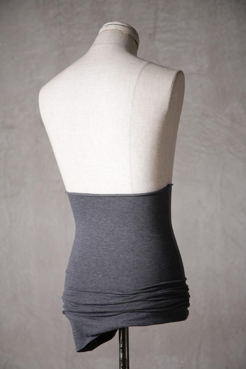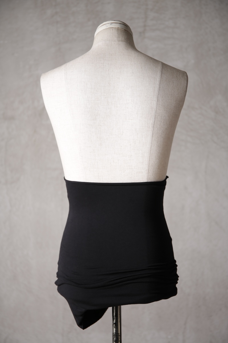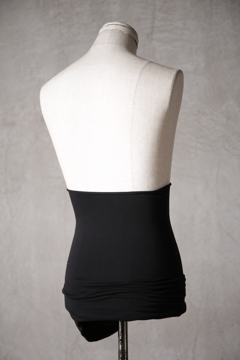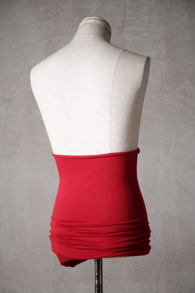 ある種の驚愕アイテムで実際的な防寒性という機能と共に「機能美」を兼ね備えた腹巻アイテム。このブランドのアイコン的なスタイルとも言えるカラーレイヤードのカットソーの組合せの最小公約数で実現出来るアイテムとなっている。通常であればタンクトップや袖付きのカットソーとの組合せでのレイヤードをこの腹巻と重ね合わせることで裾からお好きなカラーリングを見せることで魅せるスタイルへと昇華させる。
