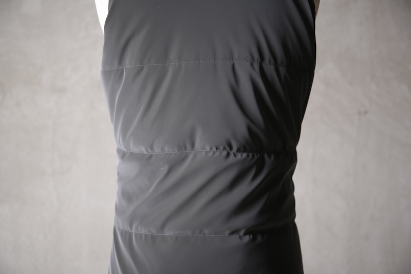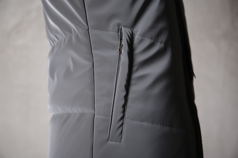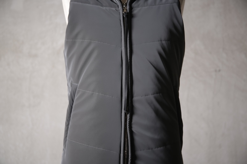 最大分量と言える200gの中綿をボディには搭載しており、抜群の保温力・防寒性能を持たせながらもベストであることでスタイリングの味付けとしての位置づけの威力は絶大であると断言出来るアイテム。